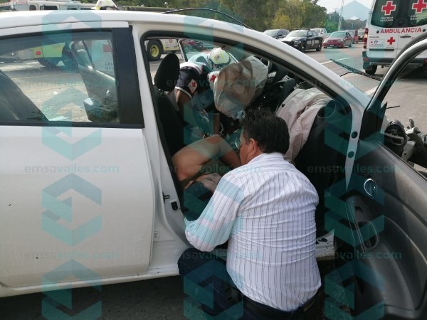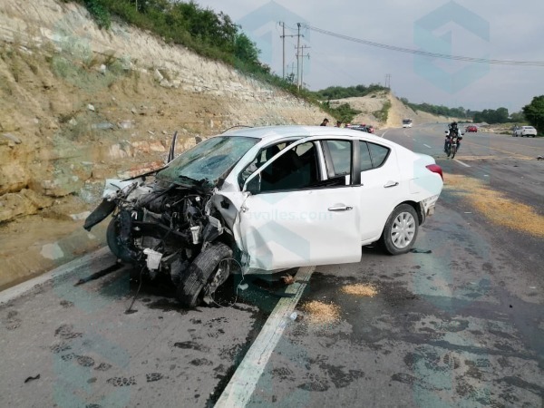 Hace apenas unos minutos se registró un choque entre un vehículo Nissan Versa color blanco, y una patrulla de la Policía Federal, en la carretera Valles-Tamazunchale, a unos metros del Hospital General.