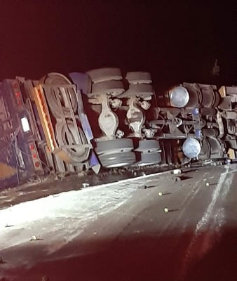 Se trata de un camión Torton el cual volcó sobre su costado izquierdo resultando con lesiones leves dos masculinos quiénes no necesitaron traslado ya que de milagro sólo resultaron con raspones y algunas contusiones leves.