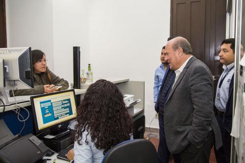 El arquitecto Villar Rubio dialogó con los primeros jóvenes de preparatoria que desde muy temprana hora se presentaron en las oficinas del Departamento de Admisiones ubicadas en el Edificio Central de la Universidad para llevar a cabo el proceso de preinscripción, que dio inicio en las oficinas centrales y en los demás campus universitarios en el interior del estado.
