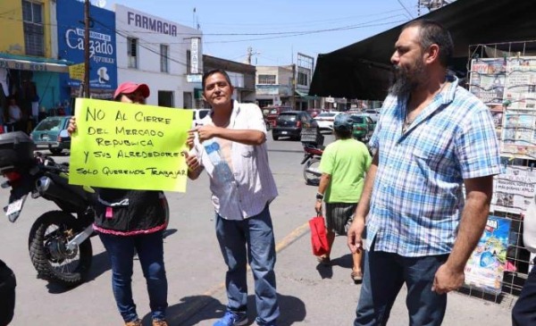 "Queremos trabajar", " no al cierre del mercado República y sus alrededores, solo queremos trabajo", fueron los principales reclamos además de acusar al Ayuntamiento Capitalino de no dar alternativas de solución por las pérdidas que se pueden generar.