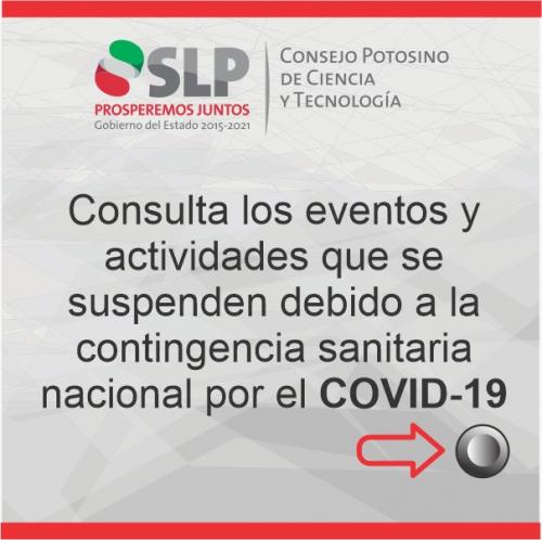 En atención a las medidas preventivas que el Comité Estatal para la Seguridad en Salud ha implementado para la contingencia sanitaria nacional por el COVID-19, el Consejo Potosino de Ciencia y Tecnología (COPOCYT), informa a toda la comunidad la suspensión y reprogramación, de los siguientes eventos y convocatorias: