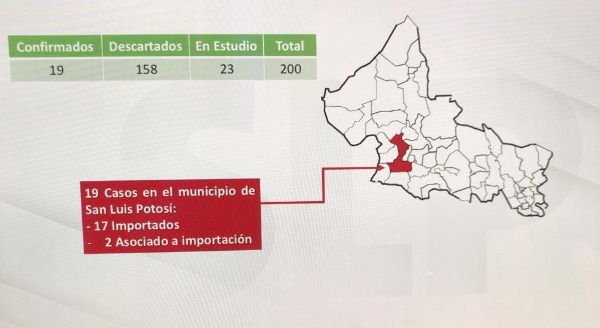 Hasta el momento la secretaría de salud tiene 19 casos de coronavirus, todos detectados en la capital potosina y permanecen en cuarentena.