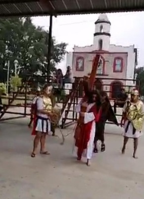 El viacrucis viviente se desarrolló en la parroquia de Santa Catarina de Alejandría a donde solo asistieron los participantes que interpretaron a los personajes, este año, por primera vez, estuvieron solos sin el acompañamiento de los feligreses que año con año se daban cita para ser partícipes de esta importante fecha para la iglesia católica.