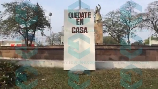 Por eso desde ayer por la tarde se colocaron 3 letreros en la glorieta Hidalgo con la leyenda de "Quédate en casa", que son visibles en los 3 puntos principales de esta vialidad.