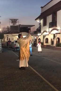 El Padre Humberto, ataviado con su vestimenta sacerdotal, era acompañado de 2 servidores de iglesia, la joven llevaba un cirio encendido y el hombre sonaba una campanita conforme avanzaba el sacerdote por la calle Carranza, Juárez, Pedro Antonio Santos, Escontría y Boulevard.