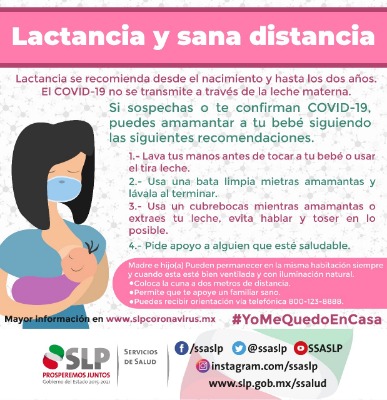 Por lo anterior, recomendó a las madres de familia lavar sus manos antes de tocar al lactante; usar un cubre bocas mientras se amamanta, evitar hablar y toser, o bien, realizar extracciones de leche y en la medida de lo posible permitir el apoyo de un familiar sano.