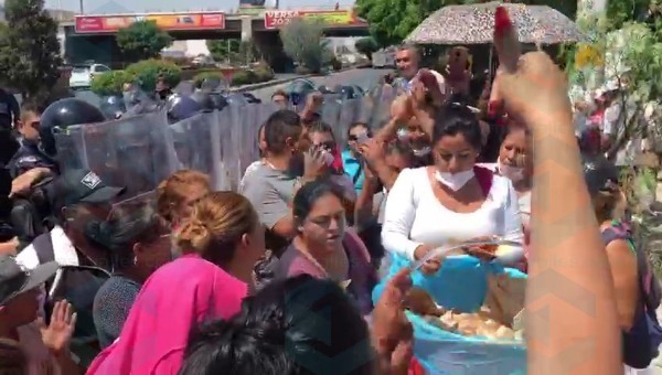 Los ciudadanos hicieron llegar hasta la manifestación una canasta de gorditas para comer en lo que son atendidos por alguna autoridad Municipal, o al menos eso esperan, cuando fueron rodeados poco a poco por elementos de la Policía Municipal dejandolos piel con piel.