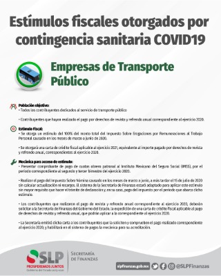 Pedroza Gaitán subrayó que el estímulo del ISN está dirigido a las y los contribuyentes dedicados al servicio de transporte público, y la carta de crédito fiscal a las y los contribuyentes que hayan realizado el pago por derechos de revista y refrendo anual correspondiente al ejercicio 2020.