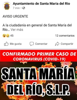 A través de la página oficial de Facebook de este municipio, encabezado por el edil Israel Reyna Rosas, confirmaron el presunto primer caso de coronavirus.