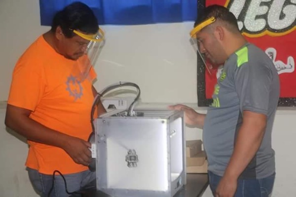 Profesores del Instituto Tecnológico Superior del municipio de Ébano están elaborando caretas protectoras contra Covid-19.