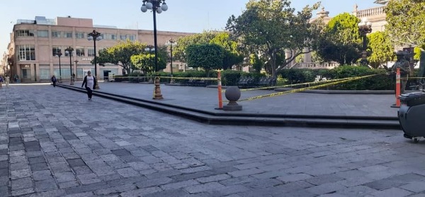 La mañana de este martes las plazas públicas del centro Histórico de la capital potosina amanecieron restringidas para el acceso de la ciudadanía.