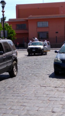 A su paso, van rociando un líquido por la vialidad pero que llega a caer también a los peatones que por la calle caminan.