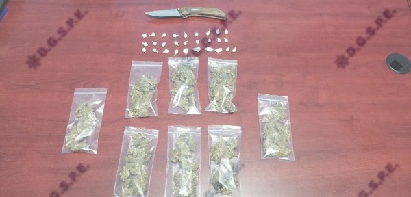 Le encontraron 08 bolsas con una hierba verde y seca con características a la marihuana, 28 dosis de un polvo granulado con características físicas a la droga sintética cristal y 01 navaja, por eso quedó a disposición de la Fiscalía General del Estado del Fuero Común