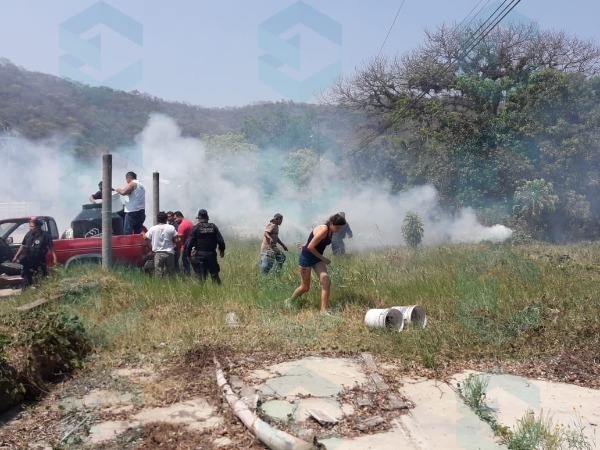 El incendio se expandía rápidamente por las cercas y amenazaba con llegar a las casas contiguas, ante la falta de bomberos que estaban atendiendo a la vez otro incendio en Matlapa, los vecinos trataron de sofocarlo con lo que podían, apoyándose de cubetas de agua, tinacos a bordo de camionetas y hasta los trabajadores de la refresquera apoyaban con sus extintores, pero el fuego de pronto tomaba más fuerza y la gente no se daba abasto para combatirlo.