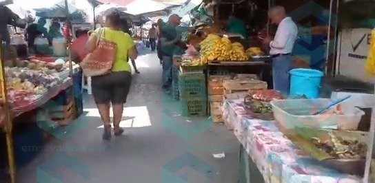 Casi desolado se observa este día el tianguis de la zona Centro de Ciudad Valles, en las calles Negrete, Porfirio Díaz y Abasolo son solo pocos los puestos que se instalaron, ya que solo operan los de ventas de alimentos y productos esenciales.