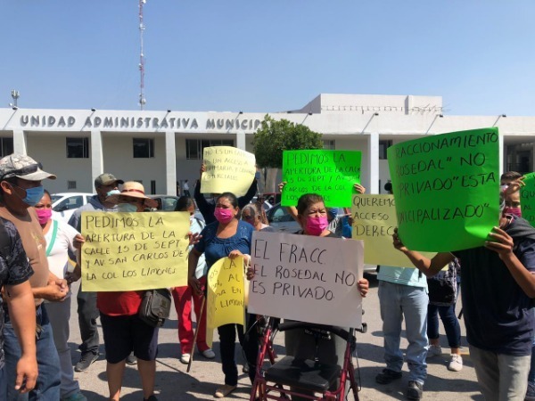 María Guadalupe Alonso Mercado, una de las inconformes, aseguró que el fraccionamiento Rosedal no es privado, por lo que la calle que conecta con 15 de Septiembre y San Carlos es pública, por lo que exigen la apertura de la misma.