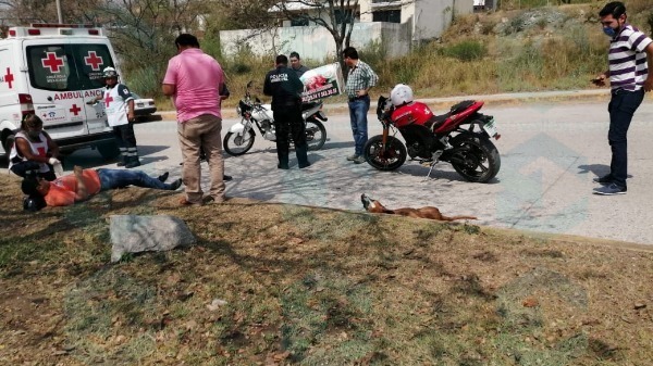 Mientras que el perro resultó con varias lesiones y se quedó tirado, por lo que oficiales de Seguridad Pública y Tránsito Municipal se quedaron en el lugar en espera del arribó de un veterinario.