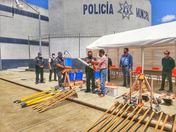 Refuerzan la Dirección de Seguridad Pública de Tamazunchale con material que le fue entregado por parte del Presidente Municipal de Juan Antonio Costa Medina para que los elementos puedan actuar con mayor rapidez en caso de incendio y cuenten con las herramientas necesarias para prestar el llamado de auxilio.