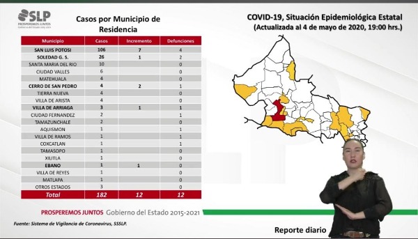 Al corte de esta mañana los casos de coronavirus en San Luis Potosí, aumentaron a 182 y además se registró un deceso en un Villa de Arriaga. Se detectó el primer caso en Ébano.