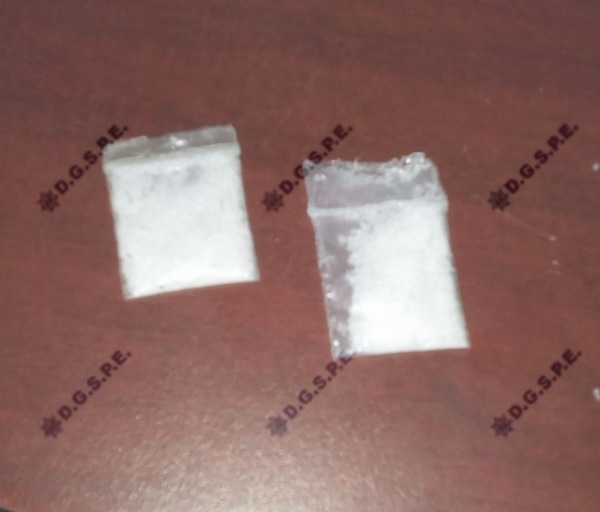 Al realizarle una revisión, se le aseguraron dos dosis de un polvo granulado con propiedades de la droga sintética cristal, por tales hechos, se procedió a la detención de Carlos R.