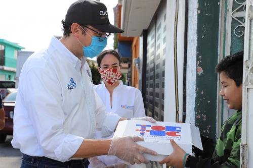 Paola Nohemí, Luis Armando, Francisco Javier, Rebeca y Luis Fernando, entre otros, fueron los pequeños que recibieron de las autoridades la también denominada "caja sorpresa, Toc-Toc: Cultura En Son De Paz", cuya distribución gratuita se realizó con todas las exigencias sanitarias y cuyo propósito también es atenuar la sensación de confinamiento ligada a las medidas de prevención sanitaria.