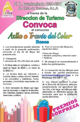 La Dirección de Turismo de Axtla de Terrazas invita a niños y jóvenes de 10 a 25 años a participar en el concurso que lleva por nombre "Axtla a través del color" donde demuestren el amor por su municipio con la finalidad de darle color y realce al municipio a través de murales como lo hiciera Héctor Domínguez en Ciudad Valles.