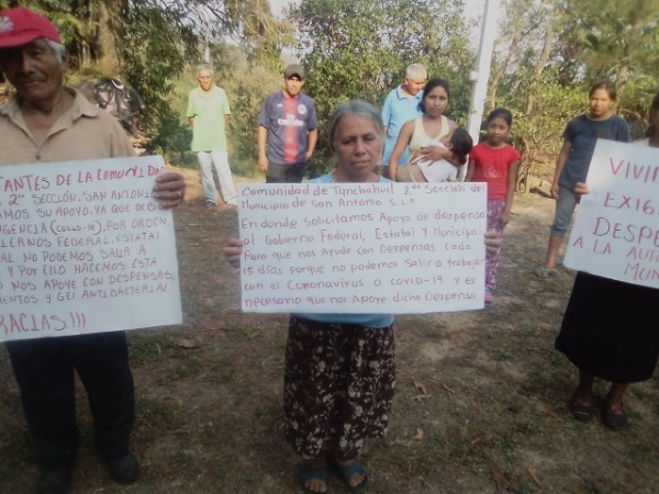 Representantes antorchistas de la comunidad de Tanchahuil Segunda Sección, del municipio de San Antonio, acudieron a solicitar apoyo a la autoridad municipal, el cual consiste en la pavimentación de algunas calles, así como pipas de agua para las familias, al igual que la entrega de despensas.