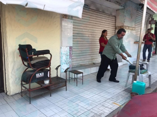 Tras la medida que a temprana hora hizo personal de la Dirección de Protección Civil y Atención a la Juventud, de colocar cintas amarillas que impiden el paso a toda persona al jardín Hidalgo, el Secretario de Ayuntamiento, René Oyarvide Ibarra se presentó en el lugar y entabló diálogo con los aseadores de calzado.