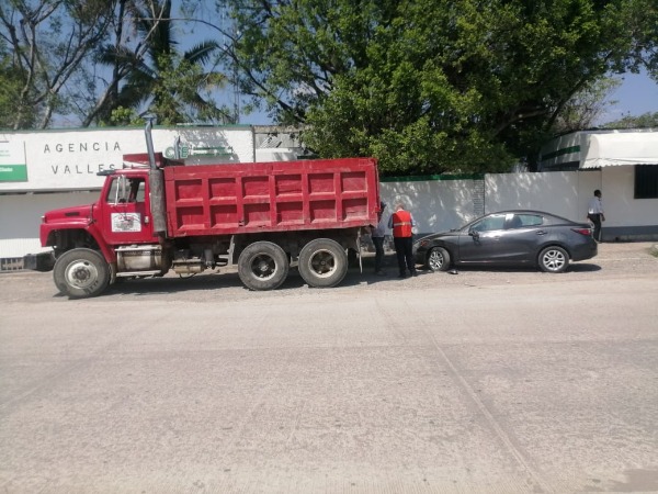 Esta tarde se registró un choque entre un camión tipo torthon, y un vehículo estacionado marca Mazda color gris, en la avenida Ejército Mexicano a la altura de la Comisión Federal de Electricidad.