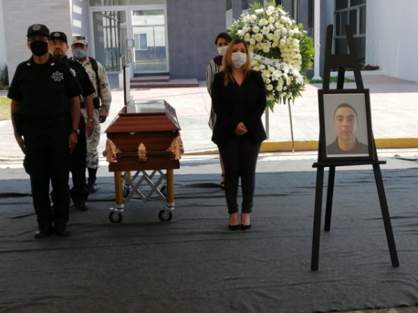 El elemento caído, recibió una guardia de honor por parte de autoridades municipales, mientras que una compañera de la corporación, dirigió un mensaje al fallecido.