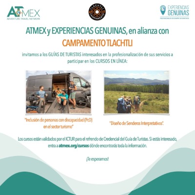 La dependencia estatal informó que serán dos cursos virtuales dirigidos para guías de turistas NOM 08 y NOM 09, especializados en la modalidad de aventura y naturaleza, que fueron posibles gracias a la alianza de ATMEX, Experiencias Genuinas y Campamento Tlachtli, quienes invitaron a las y los interesados a participar en la profesionalización de sus servicios.