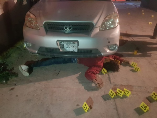 • Los restos de la víctima quedaron debajo de un automóvil donde intentó resguardarse de la lluvia de balas que caía en su contra.