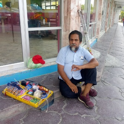 Apolinar Salazar, vive con discapacidad motora y usa muletas, a pesar de los peligros del contagio al Covid-19 y por la crisis que se acrecenta todos los días sale a vender dulces a las calles para subsistir.