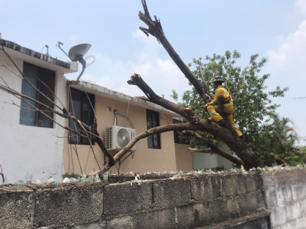 La familia que habita el domicilio refiere que de pronto escucharon un fuerte estruendo y al salir al patio se percataron que el árbol se había caído.