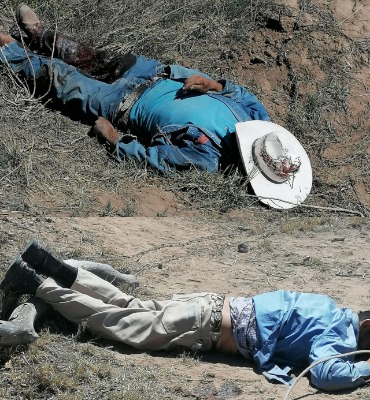 El afligido padre, ya había cubierto los restos de sus hijos con costales, los cuales se encontraban a dos kilómetros de la calle principal del ejido, uno de ellos, fue localizado detrás de unos bordes, al igual que un caballo también sin vida.