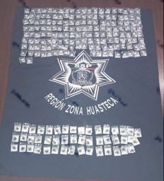 Derivado de una denuncia anónima, Policías Estatales detuvieron a tres personas en la región Huasteca, por los presuntos delitos de posesión de droga en la delegación de Aguabuena.