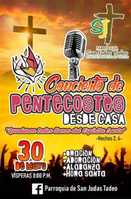 La Parroquia de San Judas Tadeo de la Diócesis de Ciudad Valles ubicada en la colonia La Pimienta invita a la feligresía a ser partícipes del concierto de pentecostés desde casa.