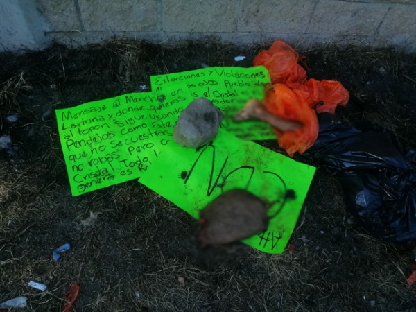 En el lugar también se encontraron cartulinas adjudicadas a un grupo delictivo que opera en la zona metropolitana