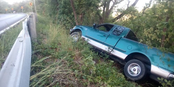 El día de hoy por la madrugada, el conductor de una camioneta marca Ford F150 color verde, perdió el control del volante cuando circulaba por la carretera libre Valles-Rioverde, en el kilómetro 49, cerca de El Serranito.