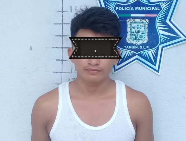 Un sujeto de 19 años d edad, que se llama Juan C., con domicilio en el ejido Pujal Coy, fue detenido esta tarde por elementos de la Policía Municipal de Tamuín.