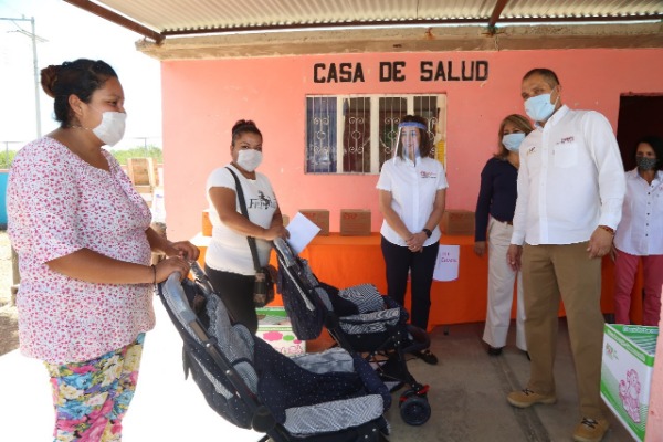 Se entregaron apoyos alimentarios, paquetes para bebé, kit familiares y dos carriolas.