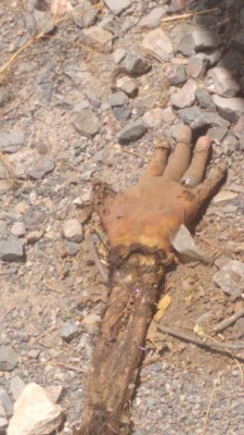 Hipótesis de los especialistas, señalan que tras haber sido abandonado el cuerpo desmembrado, algún animal, posiblemente un perro, pudo haberse llevado la extremidad hoy localizada, la cual porta un anillo en la mano, mientras que gran parte del brazo, ya tiene expuesto el hueso.