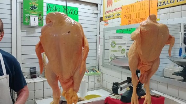 Ladislao Azuara, vendedor de pollo fresco en el mercado Gonzalo N. Santos, señaló que se ha mantenido el costo de 75 pesos por kilo sin que haya sufrido ningún incremento.