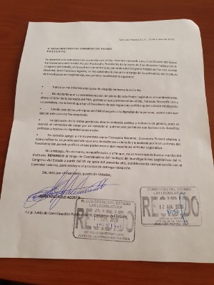 Este viernes la Coordinadora del Instituto de Investigaciones Legislativas del Congreso del Estado, Lidia Argüello Acosta presentó su renuncia al cargo, a partir de este lunes 15 de junio.