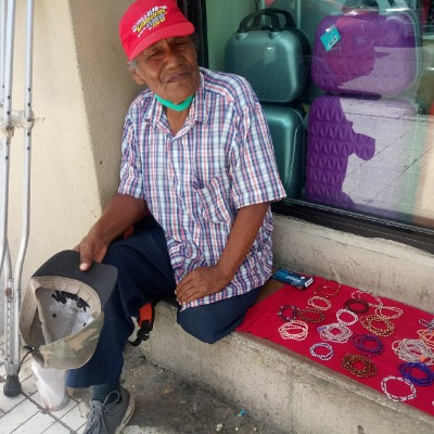 Platicó que un conocido que también sufre de una discapacidad le dio a vender unas pulseras que él mismo elabora, aunque al principio creía que nadie le compraría sí las ha estado vendiendo, todos los días se pone en la calle Hidalgo a ofrecer las pulseras, las cuales da en 5 y 6 pesos y aunque lo que sacan de ganancias lo reparten entre los dos ya sale para las tortillas.