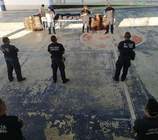 La Presidenta de Matlapa Karina Rivera Obregón junto con el secretario general Esleban Vite Antonio hicieron entrega de uniformes nuevo a los elementos del cuerpo policiaco de Seguridad Pública y Tránsito Municipal.