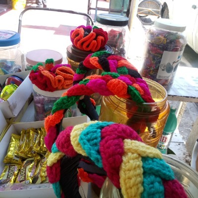 Señala que le toma 2 días hacer sus diademas, hace dos por día, pero con las ventas tan bajas solo se ha dedicado a la venta de revistas y a tejer.