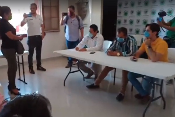 En esta reunión estarían escuchando las peticiones de los comerciantes y esperarían también la llegada del Secretario del Ayuntamiento René Oyarvide Ibarra.
