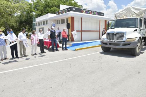 En el arranque formal de la entrega estuvieron presentes familias para recibir los paquetes con productos de la despensa básica, quienes a nombre de todos los hogares beneficiados, agradecieron este apoyo tan necesario en estos momentos de confinamiento.