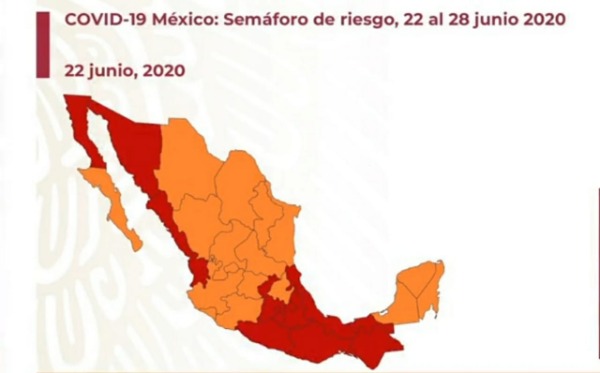 A 22 días de que se inicio la nueva normalidad por la pandemia del COVID 19 en México, fase de regresar a las actividades de manera ordenada, cautelosa y organizada, SLP está dentro de los 16 estados con semáforo de riesgo color naranja del del 22 al 28 de junio, que equivale a riesgo epidémico alto. 16 entidades permanecen con semáforo en rojo.
